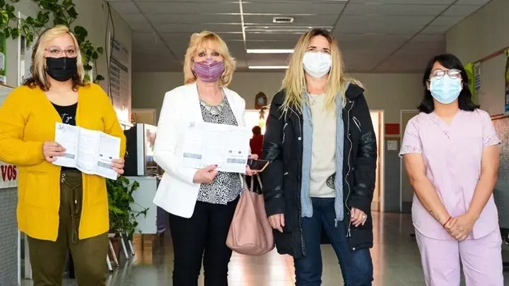 La concejal de Rawson Norma Medina, la coordinadora del Centro Integral de la Mujer, Lic. Giselle Porras y las técnicas radiólogas, Alejandra Diez y Selva Bernal llevaron a cabo ayer jueves la campaña de concientización sobre el cáncer de mama en el barrio Gregorio Mayo de la ciudad capital.