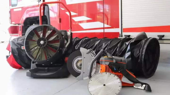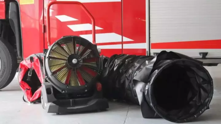 En el caso del ventilador movil, pertenece a la serie Fanegry de Rosenbauer. No solo cumple la función de ventilar, sino que también protege edificios mediante pulverizador de agua, elimina gases peligrosos e incluso generar espuma. La eliminación del humo garantiza un acceso fácil y rápido, una mejor visibilidad y una reducción de las temperaturas. Gracias al ventilador de alta potencia, los bomberos corren menor riesgo y es más probable el rescate de personas en edificios con mucho humo.