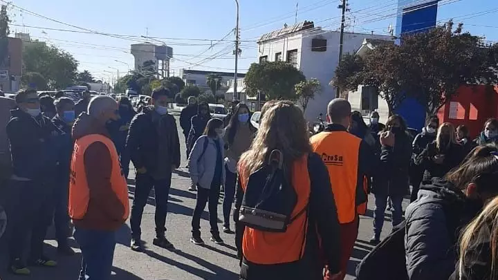 Un grupo de trabajadores nucleados en el SiSaP concentró en primer lugar frente al Ministerio de Salud en Rawson para reclamar por la regularización en el pago de sus haberes atrasados.