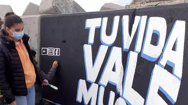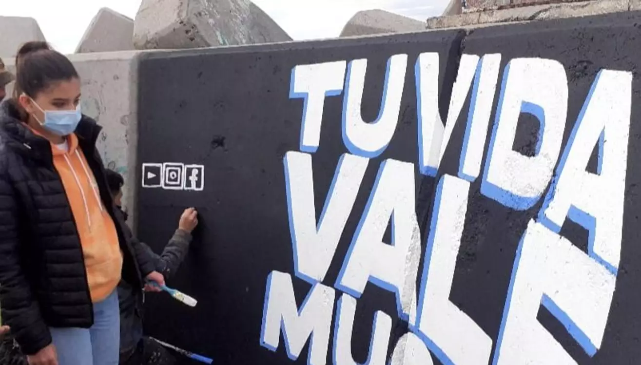 Rawson: Biss participó de la inauguración de un nuevo mural en la zona de la escollera