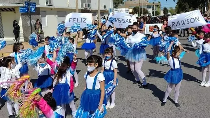 En el desfile que se desarrollo esta mañana, "gran cantidad de alumnos" participaron del festejo luciendo los colores azul y blanco del club.