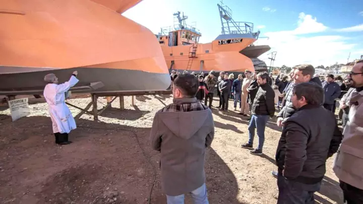 La ceremonia se llevó a cabo en el Astillero El Ancla, ubicado en Marcelino González al 2400, y fue encabezada por el propietario de la firma, Daniel Nogales y familia; con la presencia del Intendente de Rawson, Damián Biss; el vicegobernador electo, Gustavo Menna; el intendente electo de Trelew, Gerardo Merino; además de concejales capitalinos y representantes del sector pesquero, tanto empresariales como institucionales.