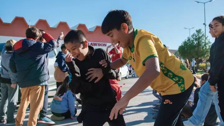 La propuesta organizada por la Municipalidad de Rawson, el Ministerio de Educación y el área de Salud de la Provincia, constó de una caminata saludable en el centro de la ciudad, juegos y estaciones predeportivas en inmediaciones del Cine Teatro Municipal.