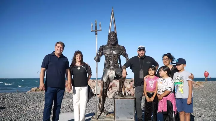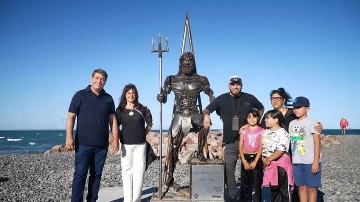 Inauguraron en Playa Unión una escultura de Poseidón