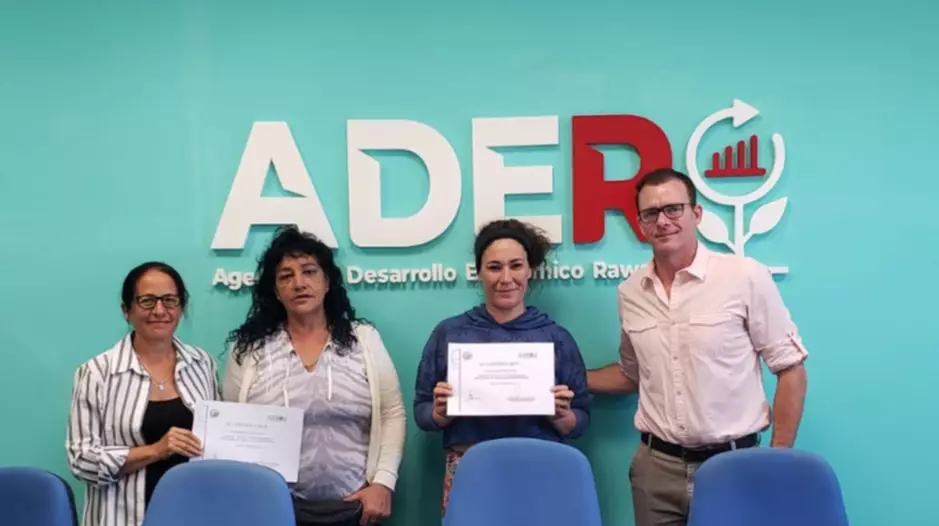 En esta ocasión, la capacitación se centró en dos emprendedoras locales que desarrollan negocios especializados en bloquera y confección de indumentaria para el sector pesquero. Además, se llevó a cabo la entrega oficial de certificados a los participantes.