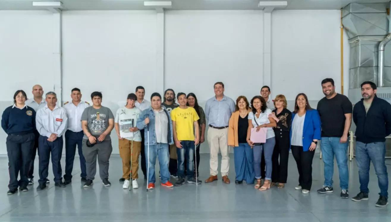 Este viernes, el intendente de Rawson, Damián Biss, junto a los concejales Norma Medina y Juan Flores Revillot, entregó la declaración de interés municipal y social al curso “RCP Accesible”, destinado a personas con discapacidad visual o visión reducida. Además, participaron de la entrega la directora de Atención Integral a la Persona con Discapacidad, Rocío Duarte Malla, el director general de Asociaciones Vecinales, Martín Chavero; integrantes del cuerpo de Bomberos Voluntarios, junto a la presidenta de la institución, Anahi Bustos; la docente, Andrea Almada y la magister en Educación, Alejandra Acosta.
