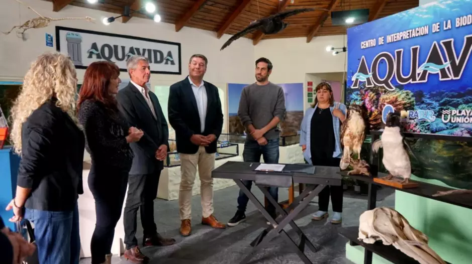 En el marco del 102° aniversario de la villa balnearia, este lunes se concretó la firma del acuerdo de cesión en comodato entre la Municipalidad de Rawson y el Museo Regional Salesiano, que permitirá la exhibición de seis ejemplares patrimoniales del Fondo de Ciencias Naturales en el Centro de Biodiversidad Marina “Aquavida”, en Playa Unión.