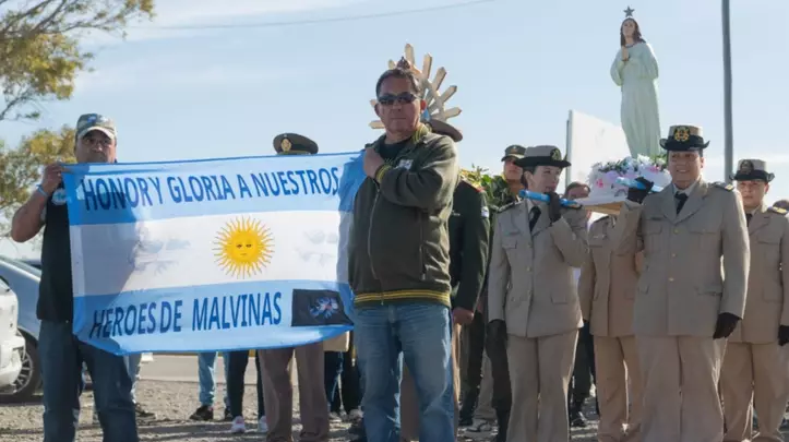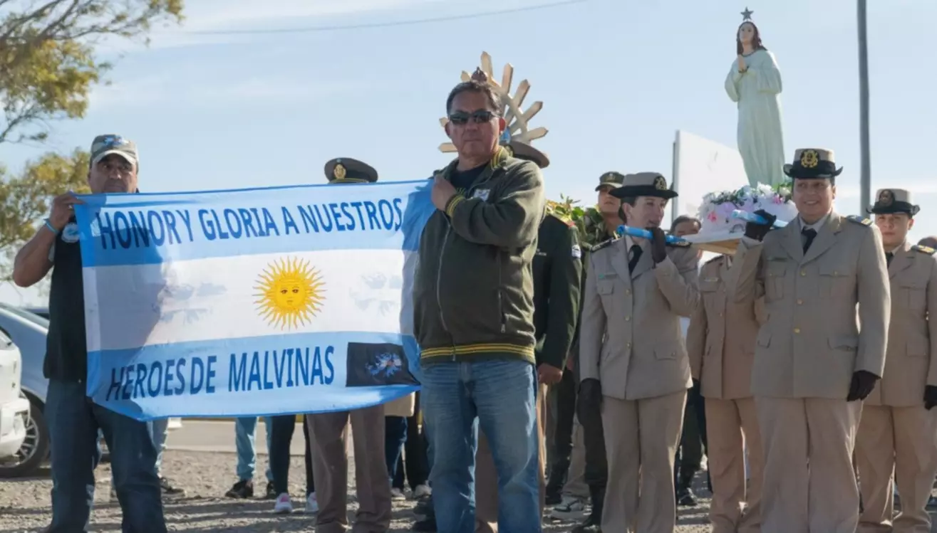 Este domingo se realizó en Rawson la procesión y bendición de la réplica de la Virgen Malvinera. La ceremonia incluyó una misa oficiada por el obispo diocesano, Monseñor Roberto Alvarez, que contó con la presencia del intendente Damián Biss, el concejal Juan Flores Revillot, la coordinadora de Patrimonio Histórico y Museos, Patricia Lorenzo, autoridades de la Prefectura Naval Argentina, Gendarmería Nacional y Veteranos de Malvinas.