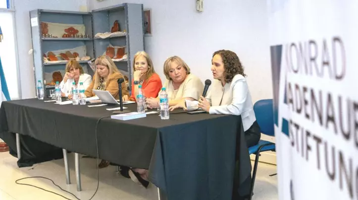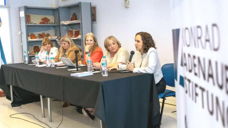 La actividad fue organizada por la Dra. Camila Banfi Saavedra, vicepresidenta 1ro del Superior Tribunal de Justicia; la Dra. Silvia Alejandra Bustos, ministra del STJ; y la concejal de Rawson, Sra. Norma Medina. El panel principal contó con la participación de la Lic. Nadia Aguado, en representación de la Fundación Konrad Adenauer Stiftung, y de la Dra. érsula Basset, editora del libro «Superando Desafíos: un abordaje integral sobre la mujer en clave de derechos humanos».