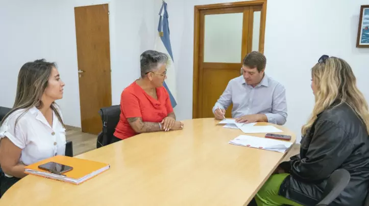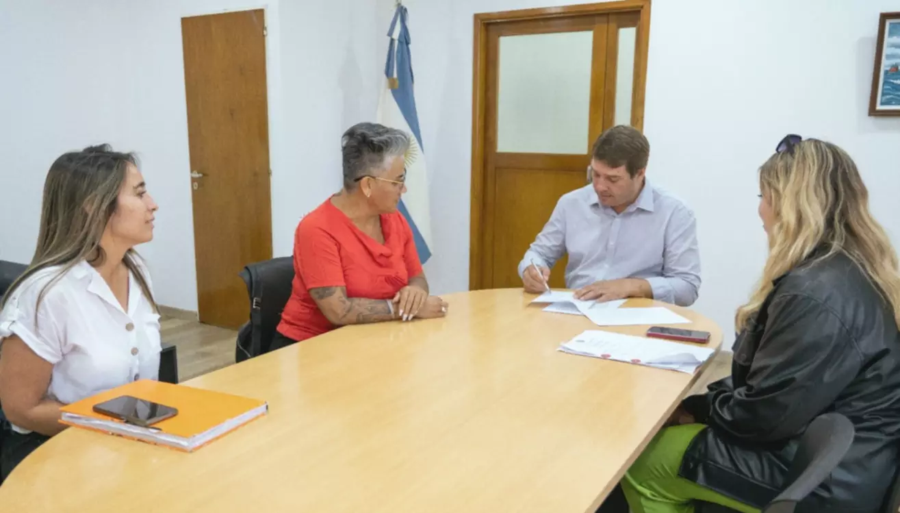 El intendente de Rawson, Damián Biss, junto a la directora de la Escuela Nro 509, Alejandra Amado, formalizó este miércoles la firma del acuerdo que establece una duración de un año y habilita el ingreso de los estudiantes a diversas dependencias del municipio. También participaron del encuentro la directora de Atención Integral a la Persona con Discapacidad, Rocío Duarte Malla, y la docente Julieta Ortiz, referente de pasantías laborales de la institución.