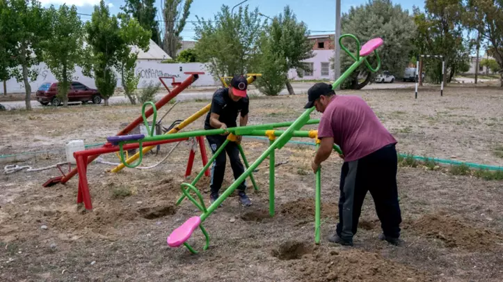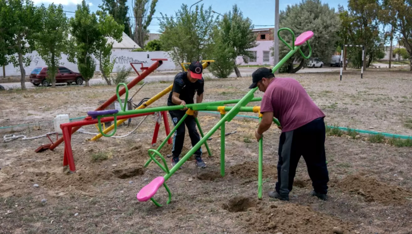 Nuevos juegos infantiles en la plaza Conrado Villegas del Área 12 en Rawson