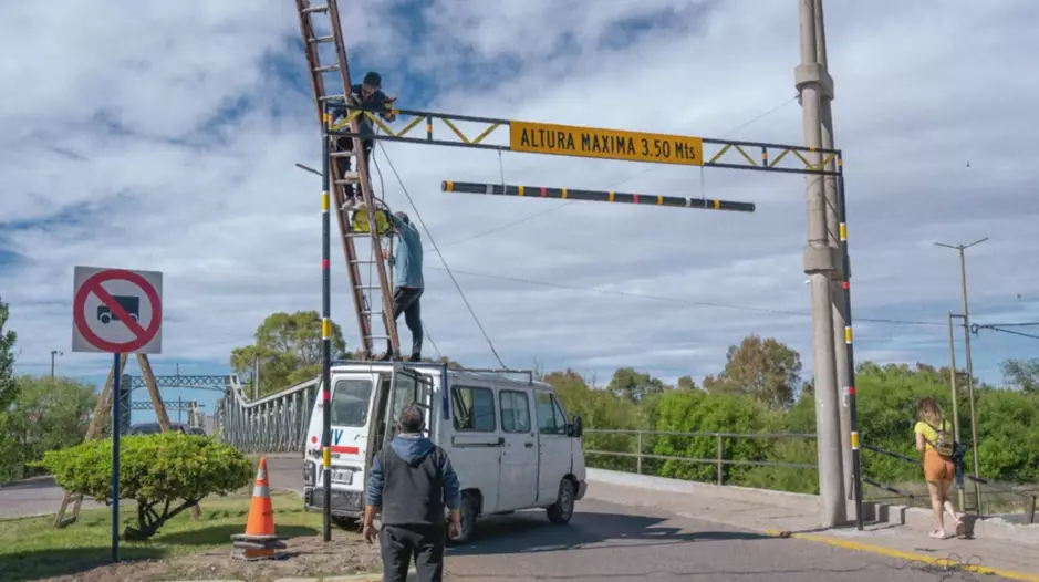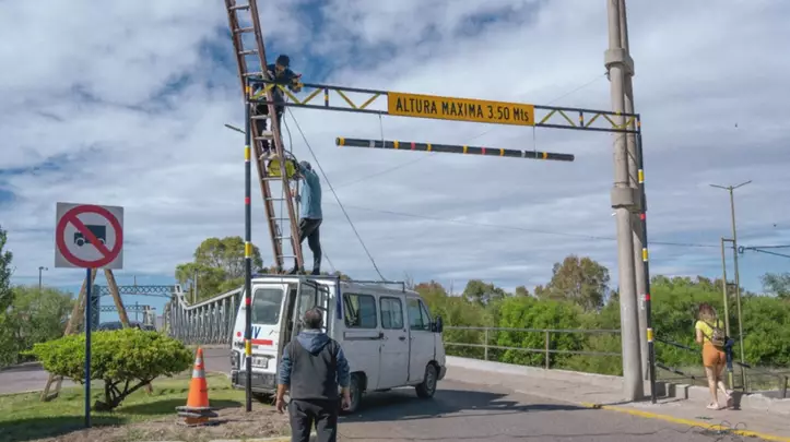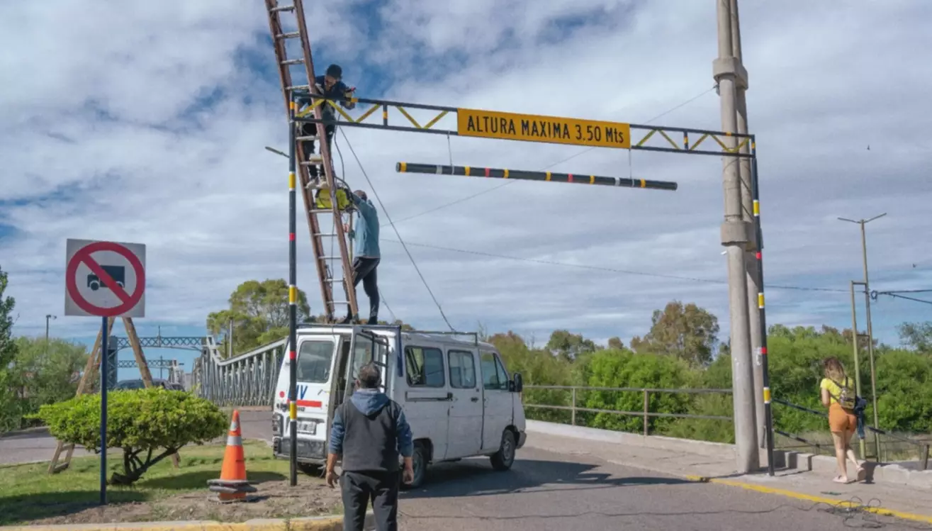 Ayer se concretó un nuevo avance con la colocación de cartelería que fija el límite máximo de altura permitido para transitar por el puente, establecido en 3,50 metros. Las tareas, ejecutadas por el área de Semaforización y Cartelería, dependiente de la Secretaría de Gobierno y Seguridad Ciudadana, incluyen la instalación de señales de prohibición de tránsito pesado y de altura reglamentaria, orientadas a prevenir riesgos y preservar el patrimonio urbano.