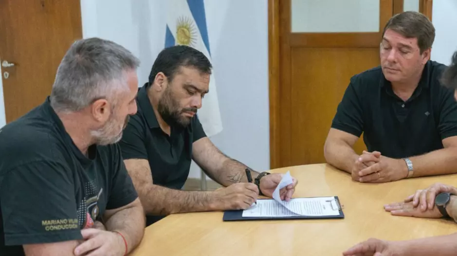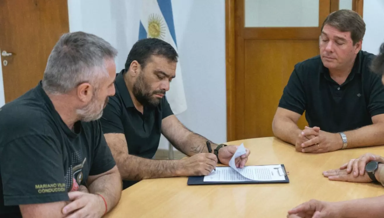 En el despacho municipal, el intendente de Rawson, Damián Biss, y los representantes del Sindicato de Conductores Navales de la República Argentina (SI.CO.NA.RA.), Germán Velasco y Jorge Maldonado, firmaron el acta compromiso que formaliza la solicitud de un predio para la construcción de un salón de usos múltiples y diversas áreas recreativas, que beneficiarán tanto a los afiliados del sindicato como a los vecinos de la ciudad.