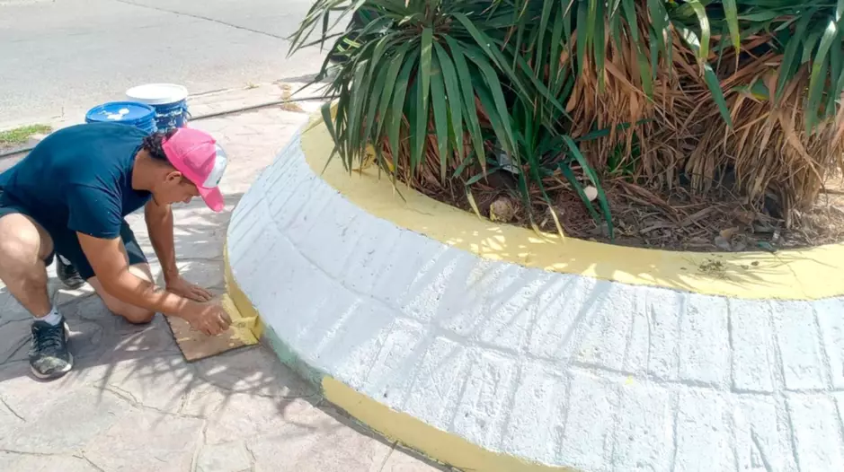 Como parte de las tareas de mantenimiento, se llevan adelante trabajos de pintura y puesta en valor de macetones históricos ubicados en varias avenidas, entre ellas San Martín, Sarmiento y Vucetich, con el objetivo de mejorar el aspecto general de estos espacios estratégicos del entramado urbano.
