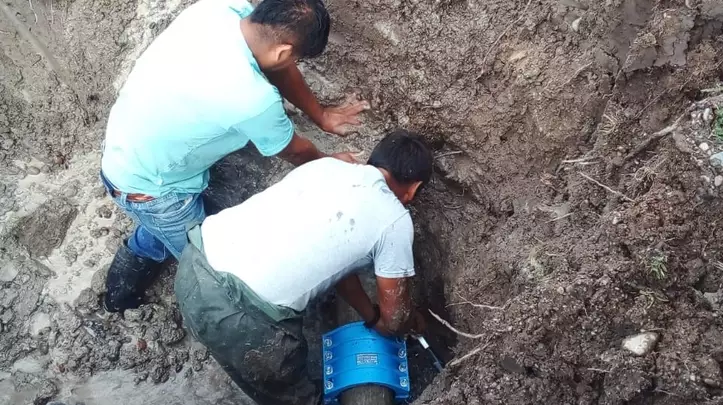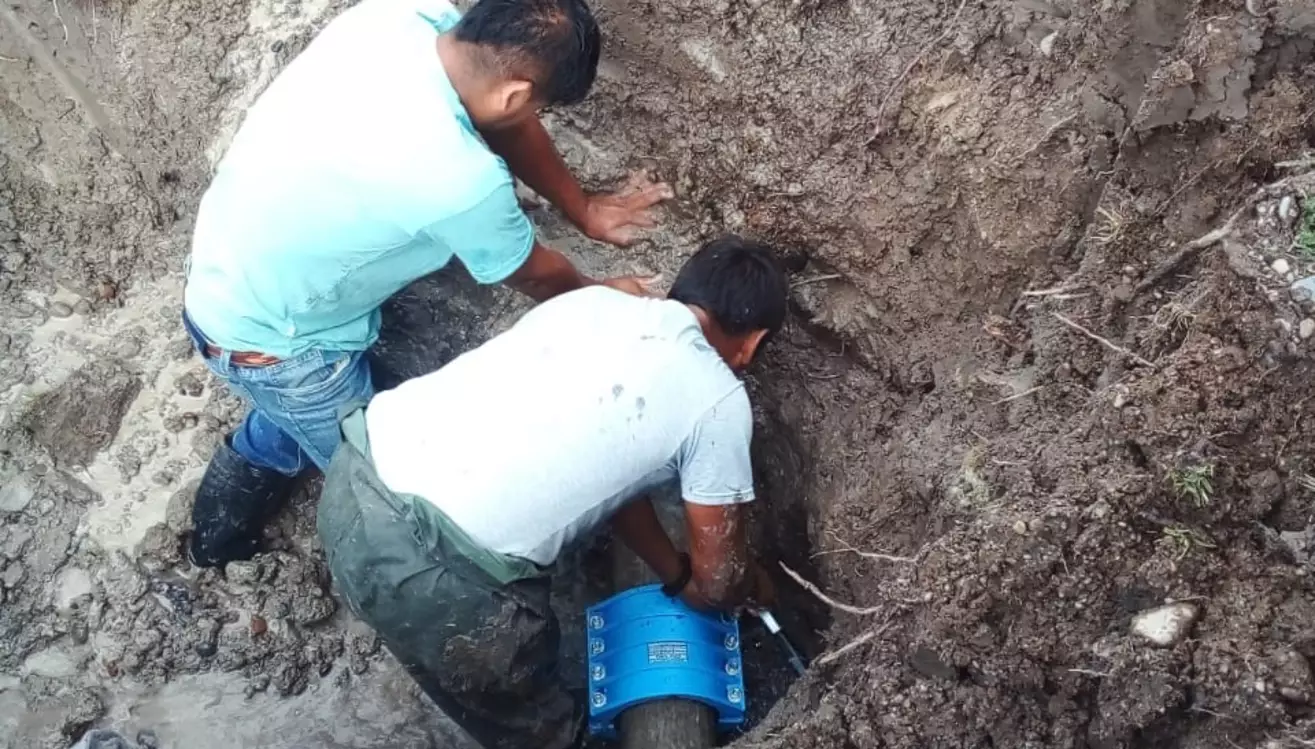 Luego de 5 horas de trabajo, se solucionó la pérdida. Las tareas no requirieron un corte de servicio para concretar la reparación, se pudo realizar la reparación con la presión de red.