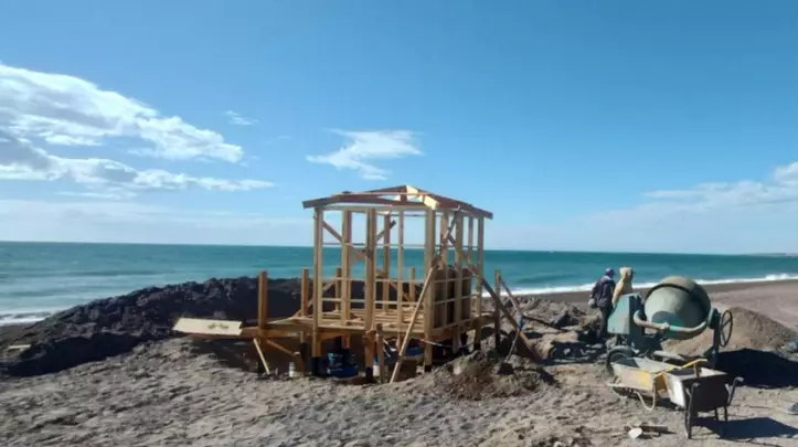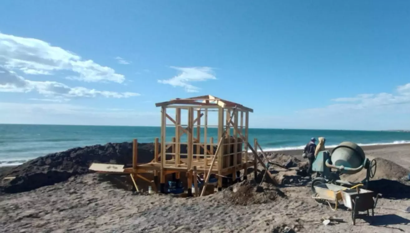 Es así que, mediante la Secretaría de Obras y Servicios Públicos, se está trabajando en la instalación de una nueva caseta de guardavidas en Playa Unión, detrás de la Biblioteca Asensio Abeijón.