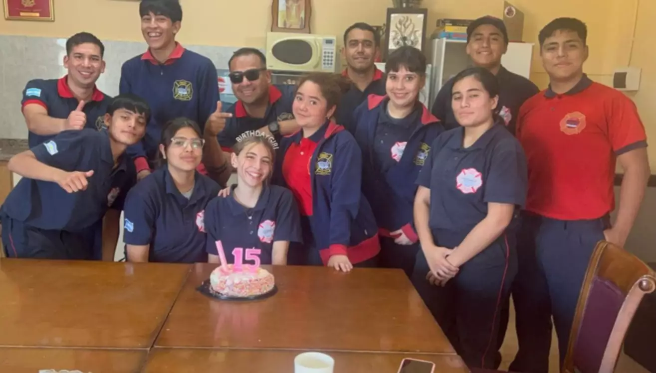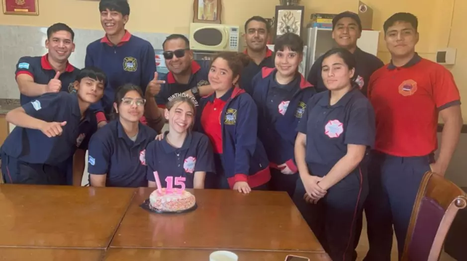 Los integrantes de la Escuela de Cadetes de Bomberos Voluntarios celebraron el cumpleaños de una de sus integrantes.