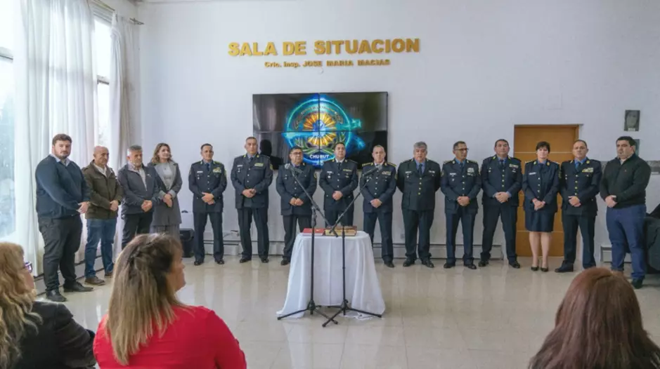 La transición fue respaldada por el decreto provincial Nø 573 y contó con la participación de autoridades policiales y provinciales, incluyendo al jefe de Policía del Chubut, comisario general Andrés García, integrantes de la Plana Mayor Policial, jefes de área y superioridad policial.