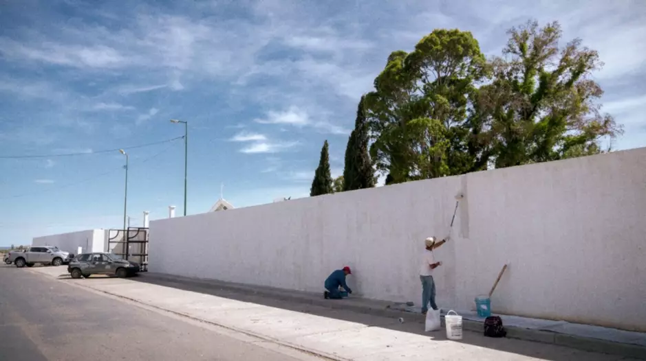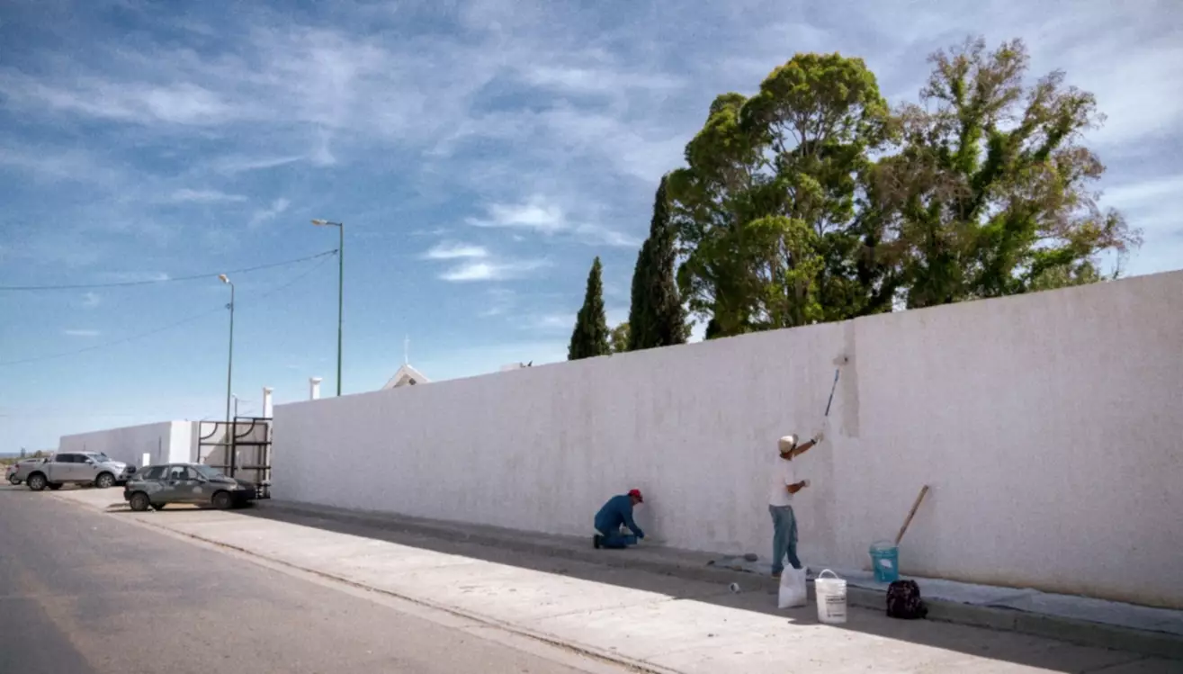 En los últimos días, se inició la renovación de la parte exterior del cementerio, aplicando pintura en sectores que necesitaban atención. De manera simultánea, se llevan a cabo intervenciones internas, con tareas de reorganización y mantenimiento del predio.