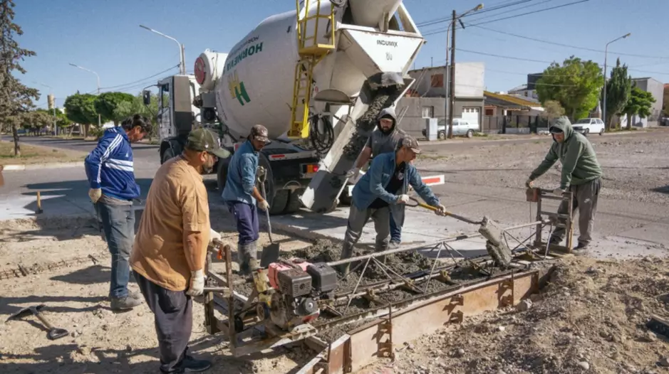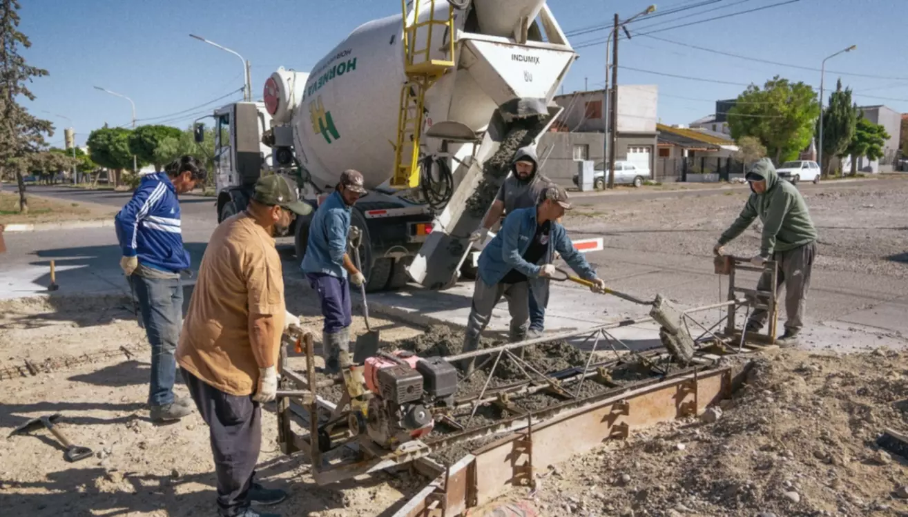La intervención se desarrolla mediante un esquema conjunto entre el Municipio, que ejecuta la obra, y la Cooperativa de Rawson, que aporta el hormigón necesario para sellar totalmente el bache, cuya dimensión abarca toda la intersección. Dado el alto flujo vehicular en la zona, los trabajos se realizan en etapas sucesivas con circulación alternada, evitando cortes totales mientras se ejecuta el hormigonado progresivo.