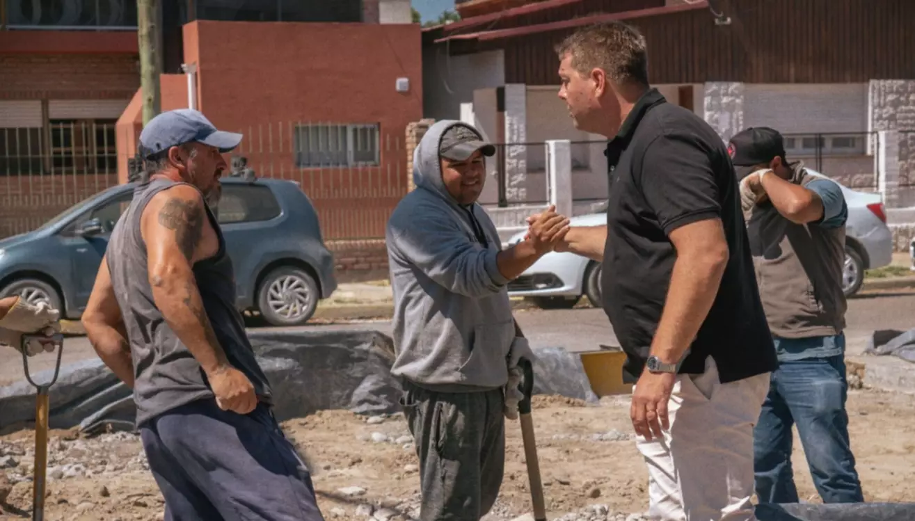 El intendente Damián Biss y la secretaria de Obras y Servicios Públicos, Lic. Mercedes Bagalciaga, recorrieron la obra para supervisar los avances, que incluyen la renovación de veredas de hormigón de alta durabilidad y la reconstrucción de cordones cuneta, generando un entorno más seguro y funcional para todos los usuarios.