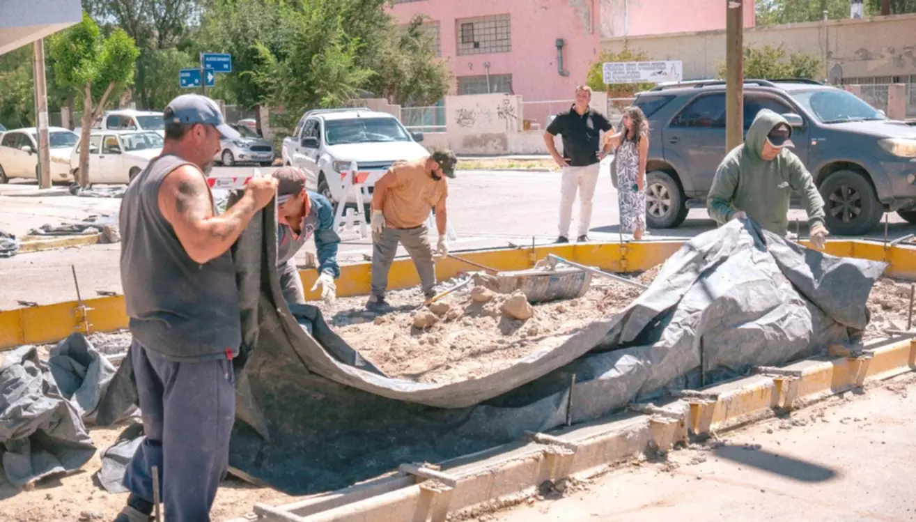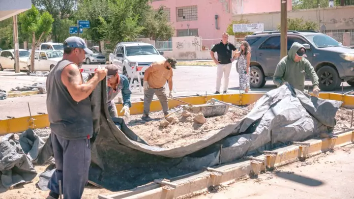 En las últimas jornadas se realizaron trabajos de llenado en las dársenas de hormigón y en los cordones de la cabecera sobre la calle Luis Costa. Además, la cuadrilla de albañilería avanza en la construcción de rampas de accesibilidad en las esquinas y se prevén intervenciones en veredas deterioradas por instalaciones sanitarias antiguas o raíces de árboles cercanos.