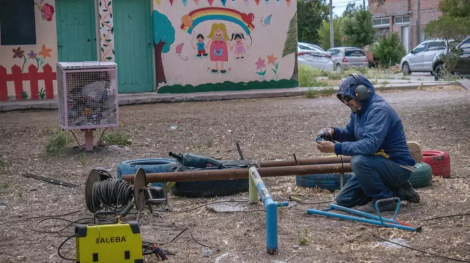 Las tareas incluyen remodelación y reemplazo de juegos, pintura de aulas y sanitarios, limpieza y mantenimiento de tanques de agua, revisión del sistema de calefacción y control general de las instalaciones.