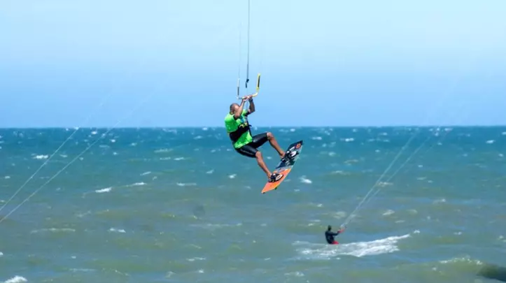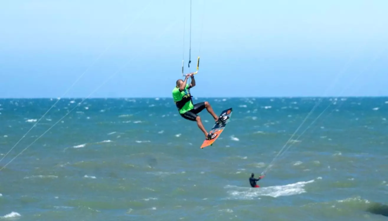Santiago Taberna, de San Rafael, Mendoza, con 15 años de trayectoria en competiciones profesionales e internacionales de kitesurf, subrayó que estos encuentros son una oportunidad única para practicar la disciplina y valoró la experiencia positiva que ofrece Playa Unión por su entorno y viento constante.