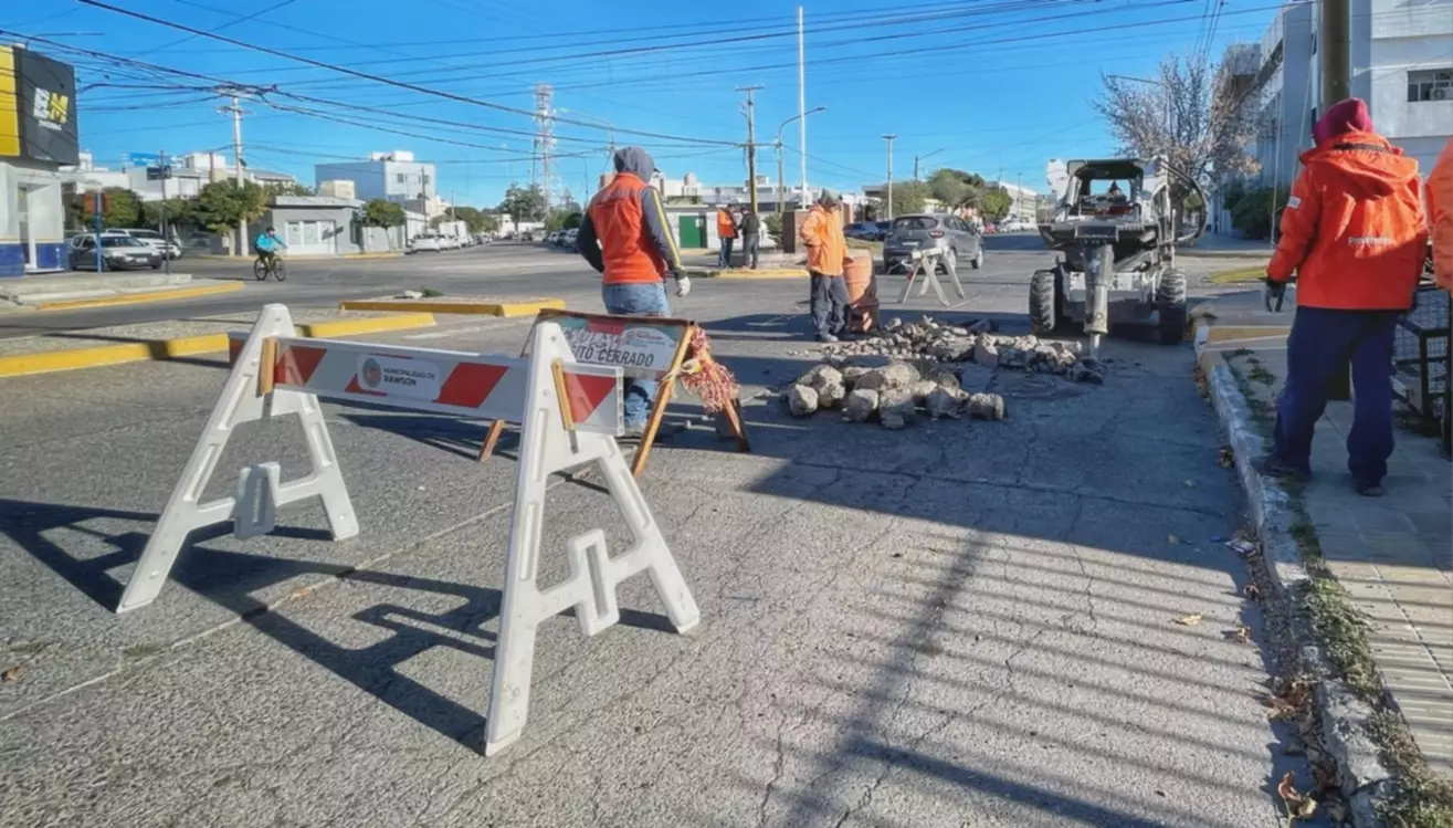 La Municipalidad de Rawson, a través de la Secretaría de Obras y Servicios Públicos, puso en marcha este viernes 17 de abril la repavimentación en la intersección de avenida 25 de Mayo y calle Belgrano. La intervención contempla la remoción y reemplazo de paños de hormigón dañados, en el marco de una planificación que se ejecuta por etapas.