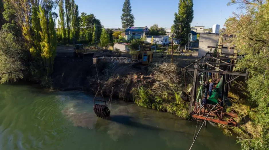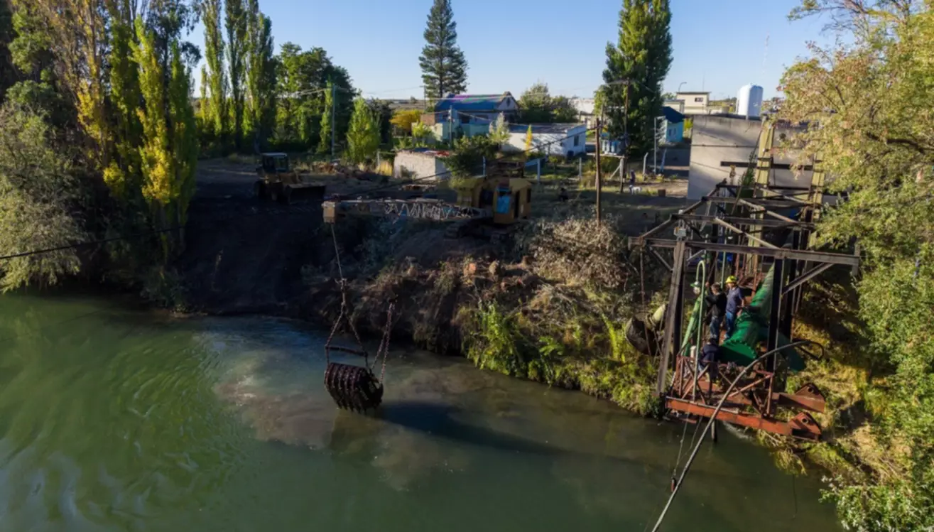 Este miércoles por la tarde, el Servicio Sanitario culmina las tareas de dragado del río Chubut que permiten limpiar la zona para concretar un canal de 3 metros de ancho, 2 metros de profundidad y 25 metros de longitud. Allí se colocará un canasto con la nueva electrobomba sumergible para la captación de agua cruda, primer paso para el inicio del proceso de potabilización del agua.