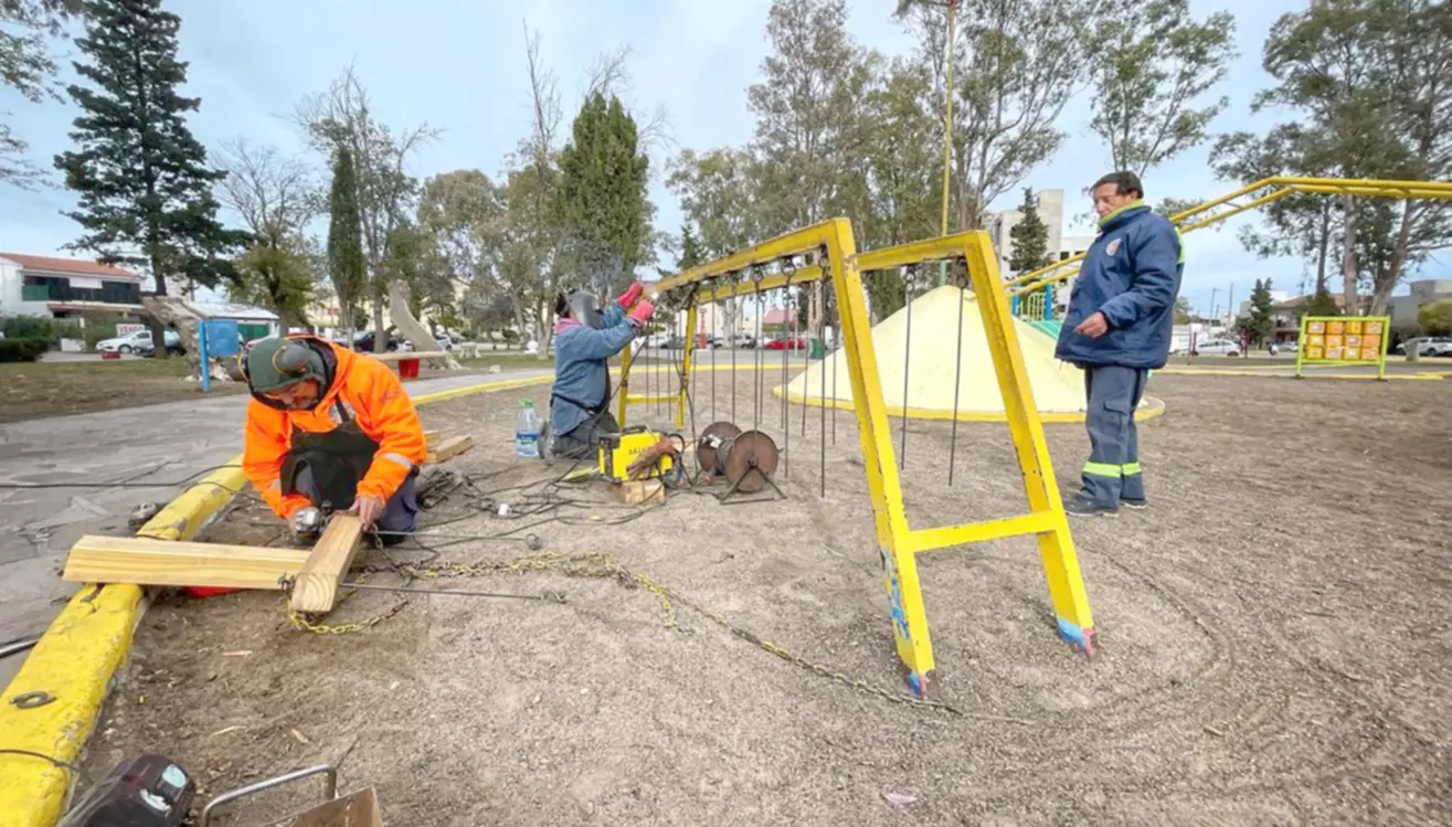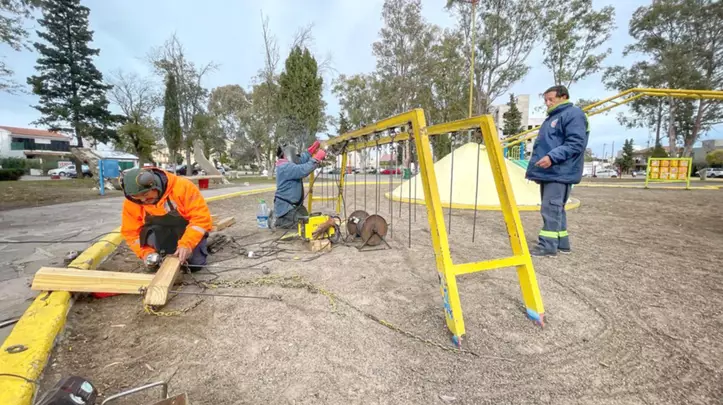 La Secretaría de Obras y Servicios Públicos llevó adelante trabajos de reparación y mantenimiento en los juegos emplazados en la Plaza Güemes, con intervenciones destinadas a mejorar las condiciones de seguridad, preservar este ámbito y garantizar su uso por parte de las familias y vecinos de la ciudad.