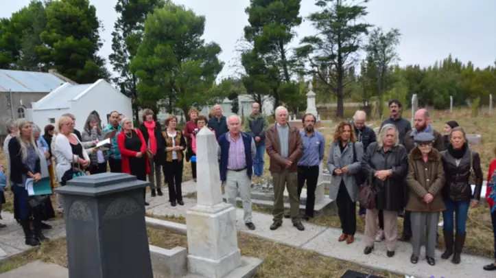 Posteriormente, los presentes se dirigieron al cementerio que se encuentra en el mismo predio de la Capilla Moriah, donde familiares y entidades galesas depositaron ofrendas florales en su tumba.