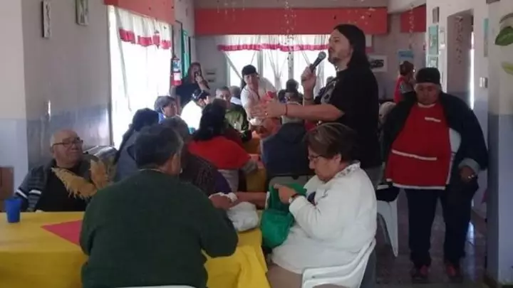 Olsina que hasta hoy permanecerá en la zona, había venido por una fiesta privada y se hizo presente en el Club de Abuelos por invitación del intendente Adrián Maderna, quien se lo había propuesto «hace unos meses».