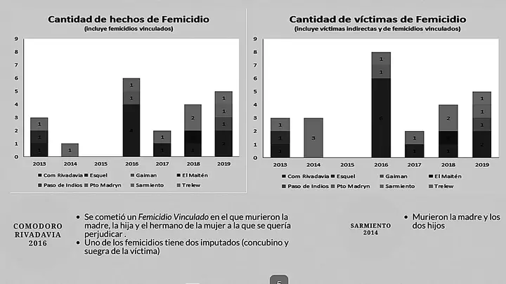 Según ese informe con las estadísticas de femicidios entre los años 2013-2019, marcan que en el lapso temporal registrado, se produjeron 21 hechos de femicidios, identificando a 25 víctimas letales de la violencia de género (directas e indirectas).