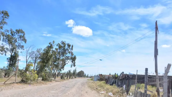 Los postes de luz colocados por los mismos vecinos sobre la calle Costanera para llevar la energía del Moreira IV la ocupación del INTA, cayeron derribados y los cables quedaron suspendidos, a pocos metros del suelo, al alcance de niños y adultos.