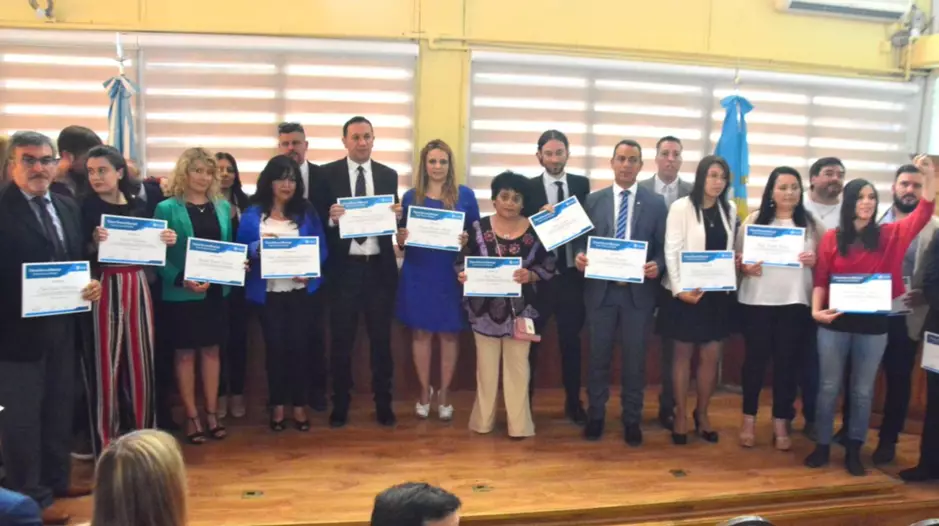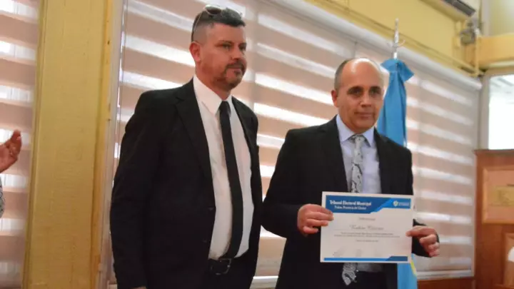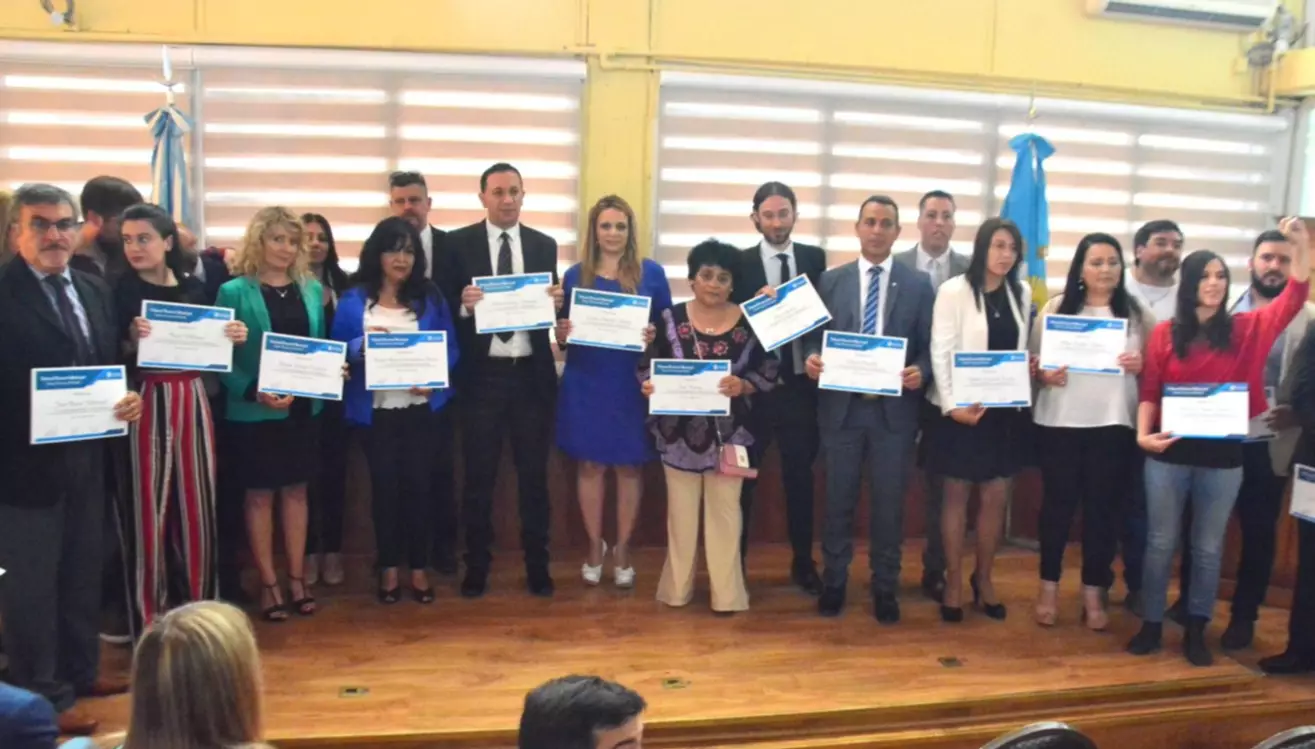 Seguidamente se entregó a los suplentes, por Chubut al Frente José Oscar Villarroel, Sandra Mariel Tribuzio, Ezequiel Alejandro Perrone, Carola Andrea Llancalahuen Pincol; por el Frente Patriótico Chubutense Juan José Cheún, Marina Mabel Gómez; por el Partido Municipal por Trelew Angel Carlos Cayupil; por Cambiemos Chubut Iris Gladis Rivero.