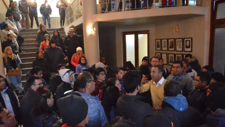 Vecinos se manifestaron en la Municipalidad temiendo que los desalojen de las tierras de INTA. Adujeron que el fiscal Gélvez determinó que «no es una usurpación». Castillo les aseguró que nadie los va a retirar del predio. «Lo tengo garantizado no solo por Massoni, sino por todo el gobierno provincial», sostuvo. Manifestantes negaron haber sido enviados por Castillo a usurpar.