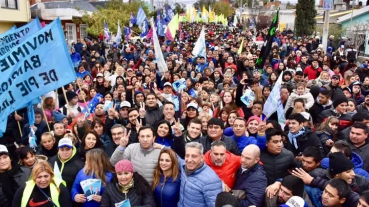 El mandatario provincial, Mariano Arcioni, y el intendente Adrián Maderna, lideraron una caminata que se inició en las calles Pellegrini Norte y Avellaneda de la ciudad de Trelew y que finalizó en la vecinal del barrio Unión, con un discurso frente a la militancia.