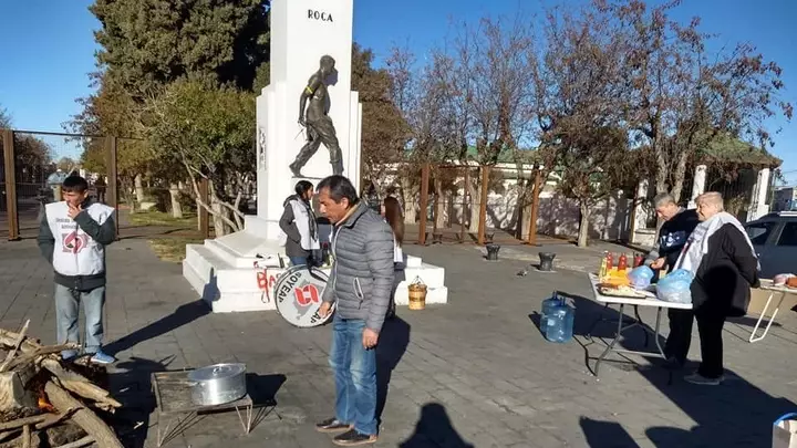 Afiliados del Soyeap y Upcn organizaron una olla popular frente a la Casa de Gobierno.