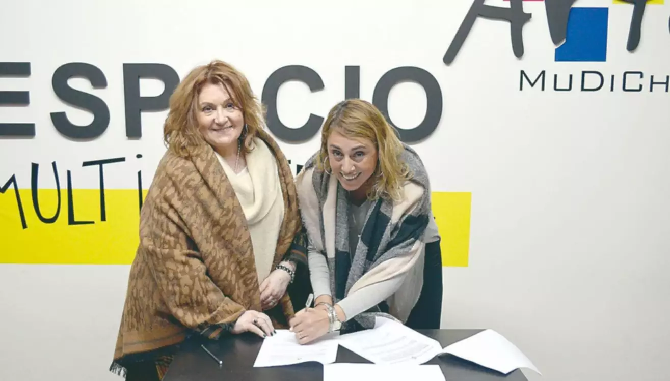 En la firma del convenio, estuvo presente la coordinadora de Arte Mudich, Adriana Keiran; la coordinadora del ISET 812 de Trelew, Ana Laura Ardiles, y el coordinador de la carrera de producción de multimedios Jorge Evrard.