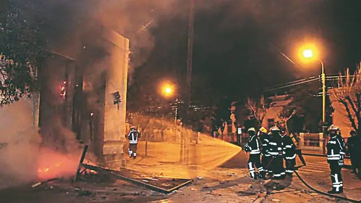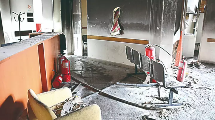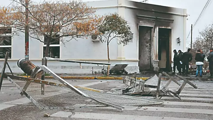La Legislatura provincial y la Casa de Gobierno amanecieron ayer bajo un cielo gris, destrozadas, con vidrios y ventanales rotos, muebles destruidos y las paredes tiznadas de hollín producto de una noche de furia y dolor, tras la trágica muerte en la ruta de dos docentes que regresaban a Comodoro Rivadavia.