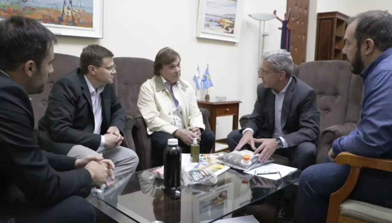 Carrasco indicó que «nos reunimos con el gobernador Arcioni para presentarle la empresa Laboratorios Biotec S.A. que se está instalando en la localidad de Camarones, y con la cual estamos desarrollando una serie de biofertilizantes a partir de la extracción de algas»; y agregó que «estuvimos dialogando sobre la comercialización y el desarrollo de los productos».