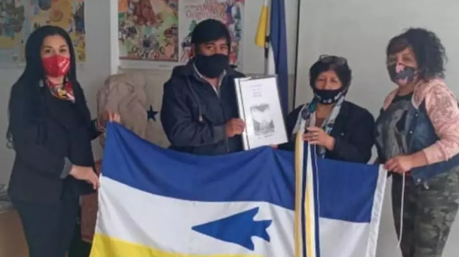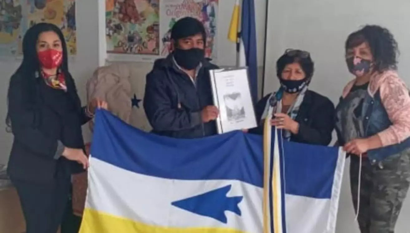 Cabe destacar que la bandera del Pueblo Mapuche-Tehuelche fue creada por Julio Antieco en el año 1983 y por medio de la Ley N° 4.072, publicada el 5 de abril de 1995, la provincia de Chubut la reconoció como ‘símbolo y emblema de las Comunidades Aborígenes de la Provincia’. En este caso, Eva Antieco hija de Julio, el día jueves viajo desde Costa de Lepa para hacer entrega personalmente de la bandera de los Pueblos Originarios que ella misma confeccionó especialmente para la Municipalidad de Trelew. En el día de ayer junto a la coordinadora de Políticas Integradoras, Lua Amado y el director de Pueblos Originarios, Eva hizo entrega de la bandera a través de un acta donde consta que la misma quedará guardada para hacer la actividad próximamente en el Salón Histórico del Municipio, hecho que será histórica para la ciudad y los pueblos originarios.