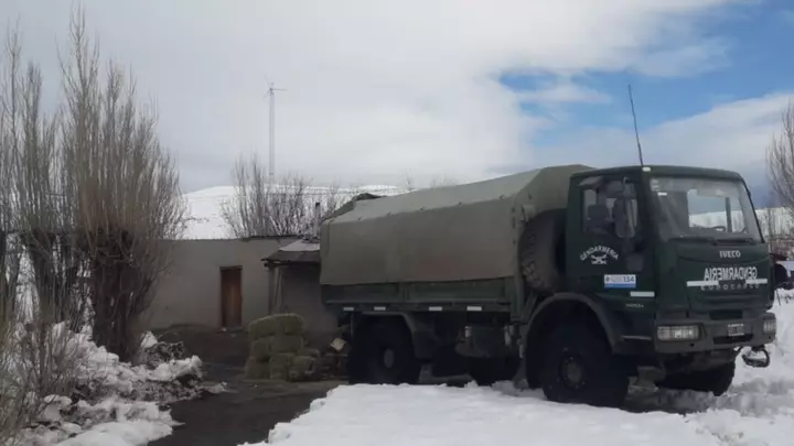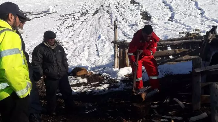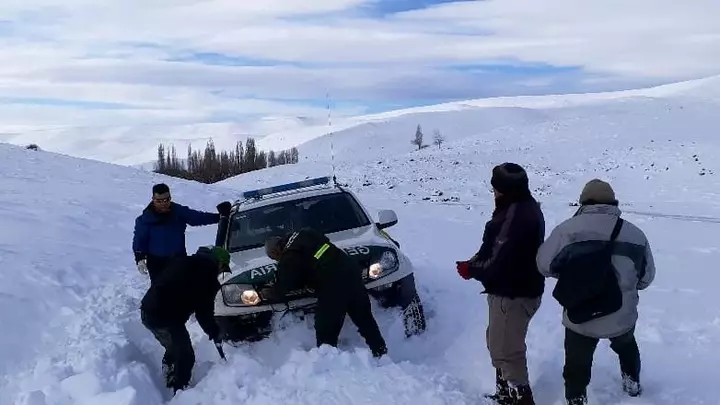 El trabajo coordinado de diversos organismos provinciales y nacionales hacen llegar la ayuda y la atención medica a los pobladores mayores aislados por el temporal de nieve en la zona. Aún quedan familias a las que no se ha podido llegar por tierra dada la cantidad de nieve acumulada y congelada por las bajas temperaturas.