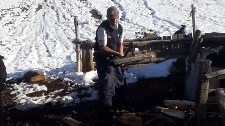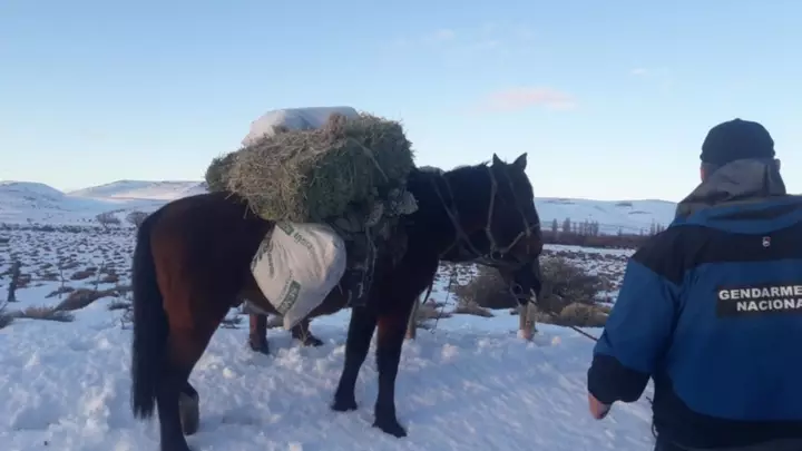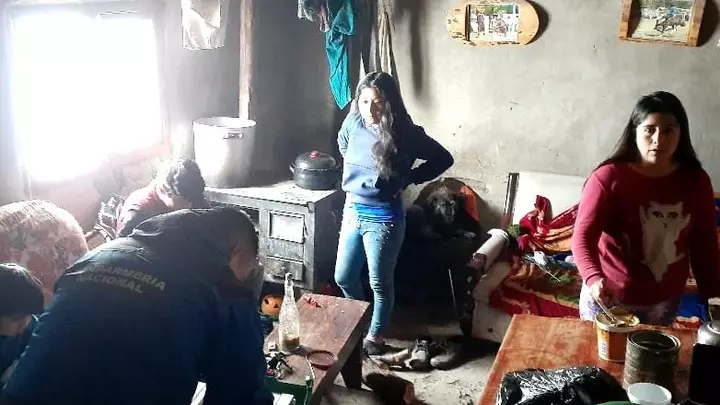 Gendarmería Nacional logró asistir con leña, víveres y atención médica a pobladores de Cushamen Centro y Costa de Ñorquinco Norte. Aún quedan familias a las que no se ha podido llegar por tierra dada la cantidad de nieve acumulada y congelada por las bajas temperaturas.