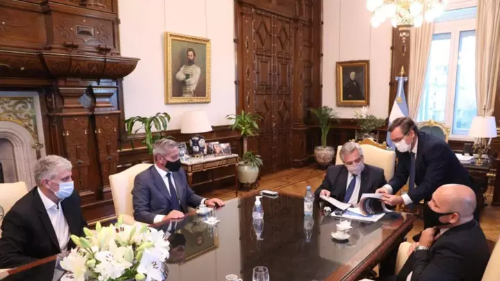 Durante el encuentro, Arcioni presentó el Plan de Desarrollo Productivo, que contempla la zonificación minera plasmada en el proyecto de ley 128/20, y el mismo recibió un fuerte respaldo y el aval del máximo mandatario nacional.