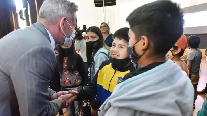 El gobernador del Chubut, Mariano Arcioni, recibió este jueves, a los alumnos de las Escuelas N° 30 de Gastre y la N° 33 de Gan Gan, en su visita por Casa de Gobierno, luego de recorrer la costa en el marco del programa Turismo, Social y Deportivo “Conociendo Chubut”.