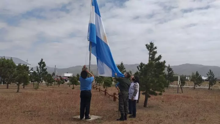 Aldea Apeleg, ubicada al extremo sudoeste de Chubut, cumple este miércoles 8 de diciembre, 99 años de historia al igual que la única institución educativa del pueblo. Su directora, la Policía, Gendarmería y la comunidad en general, asistió al sencillo acto que tuvo izamiento del pabellón nacional
