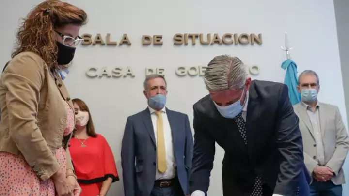El mandatario provincial estuvo acompañado por los ministros de Economía, Oscar Antonena; de Salud, Fabián Puratich; de Educación, Florencia Perata, de Turismo, Néstor Garcia; de Ambiente, Eduardo Arzani; de Agricultura, Ganadería, Industria y Comercio, Leandro Cavaco; el funcionario saliente, Gerardo Bulacios, familiares y empleados del IPA.