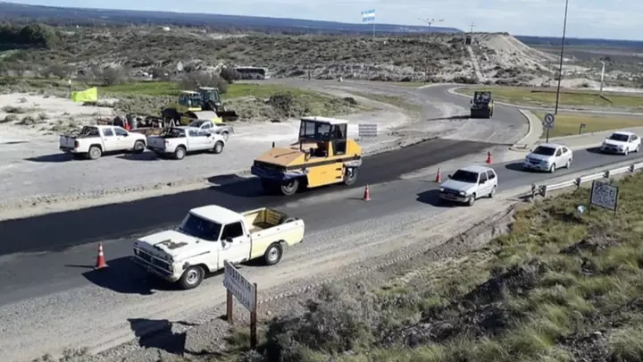 Continúa la repavimentación en la rotonda de acceso a Gaiman